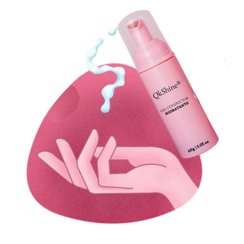 Aplica una capa uniforme de tu gel hidratante en las áreas donde utilizarás tu QkShine®️.