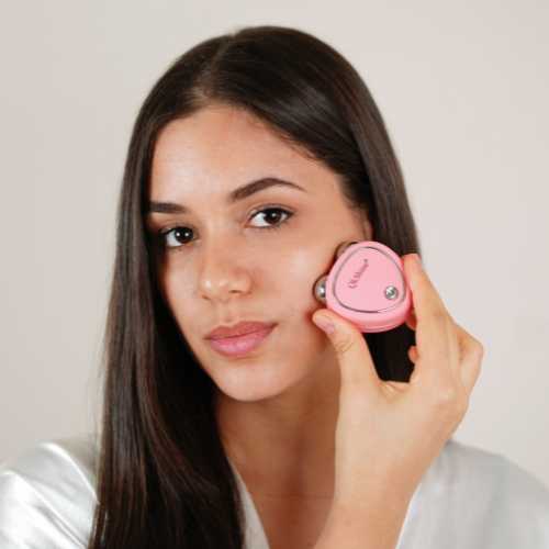 Consiste en la aplicación de suaves ondas de energía en la piel que hacen que los músculos de tu cara se contraigan y luego crezcan más fuertes. Es como llevar tu cara al gimnasio, ¡y solo te toma 5 minutos al día!
